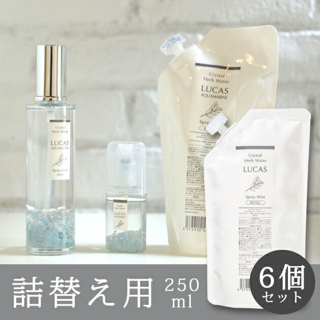 容量 250ml入り×6個 原材料 ・水晶:精油、水晶抽出水溶性珪素濃縮溶液、他 ・アクアマリン:精油、水晶抽出水溶性珪素濃縮溶液、他 ・アメジスト:精油、水晶抽出水溶性珪素濃縮溶液、他 ・シトリン:精油、水晶抽出水溶性珪素濃縮溶液、他 ・ローズクォーツ:精油、水晶抽出水溶性珪素濃縮溶液、他ホワイトセージ 浄化スプレー LUCAS - ルカス - 【詰め替え補充液 リフィル 6個セット】 ※本商品は「ホワイトセージ浄化スプレー ポケットルカス」「ホワイトセージ浄化スプレー LUCAS - ルカス -」詰め替え用商品です。 必ず本体に詰め替えてご使用ください。 こちらは「詰め替え用」商品です。